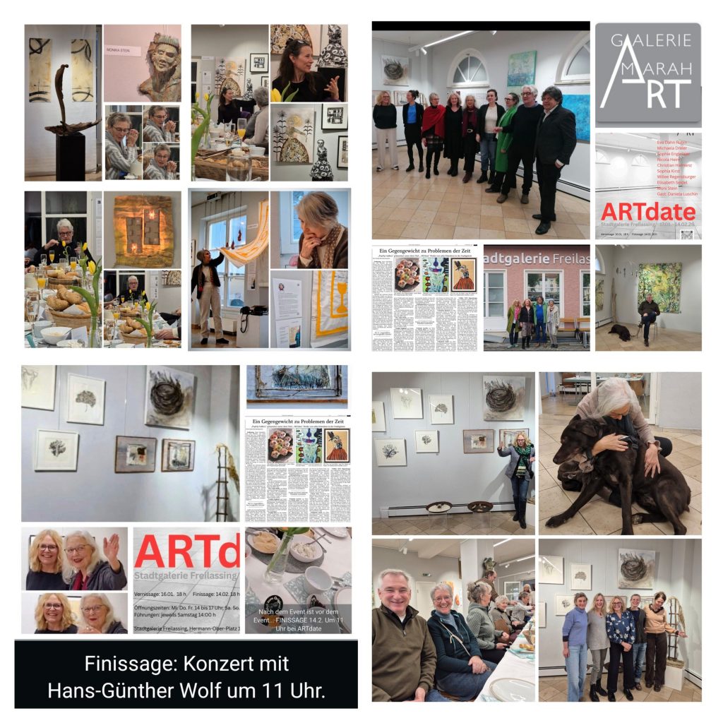 Rückblick auf fast fünf intensive Wochen einer sehr gelungenen Ausstellung in der Stadtgalerie Freilassing. ARTdate, kuratiert von der Galeristin Marah Strohmeyer-Haider, wurde von vielen Freunden, Gästen, Kollegen, Künstlern und zufälligen Besuchern genützt für eine Begegnung mit zehn verschiedenen Ansätzen zu Themen, die uns faszinieren und berschäftigen und die so Ausdruck und Umsetzung finden. Eine hervorragende Presse durch die Journalistin und Fotografin Gisela Brechenmacher und durch Phillip Kuffler vom rfo, Regionalfernsehn in Rosenheim, Chiemgau und darüber hinaus, haben dazu beigetragen: