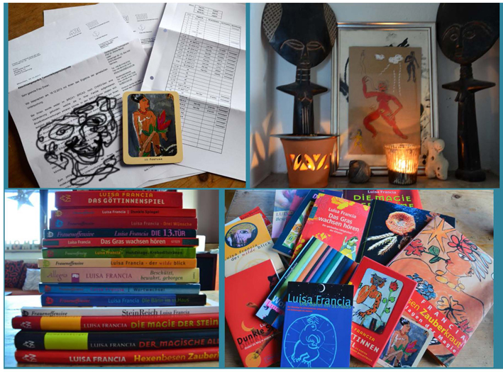 10januarLuisa Francia ist Schriftstellerin, Künstlerin, Filmemacherin und Reisende. In zahlreichen Büchern gibt sie ihre Erfahrungen und Erlebnisse, daraus resultierende Anschauungen sowie unkonventionelle, heitere, nachdenkliche, berührende, aufwühlende und  in sich schlüssige Erkenntnisse wieder. Die Deutsche Nationalbibliothek verzeichnet über 50 Bücher von Luisa Francia in ihrem Bestand. Einige davon sind im Nymphenburger Verlag erschienen und eine Freude für Auge und Hirn, reich bebildert und jedes für sich ein kleines Universum an Schätzen und Wissen. Andere Bücher sind Bestseller und auch als Taschenbücher erschienen. Manche dieser Bücher wiederum haben das besondere Potential, Frauen in Zeiten von Krankheit und Schicksalsschlägen mit zu begleiten und zu unterstützen – ganz ohne den üblichen therapeutisch-dogmatischen Ansatz. Als Luisa Francia erfährt, dass sie einen Tumor im Bauch hat, ist ihre erste Reaktion, das Leben zu feiern. Auf ihrem Weg zur Heilung vertieft sie ihre weibliche spirituelle Kraft. Mit ihrem persönlichen Erfahrungsbericht „Kubabas Granatapfel“ macht Luisa Francia anderen Frauen Mut, sich aktiv für ihre Heilung einzusetzen. Gespickt mit Gedanken und Erfahrungen, die sie während ihres Krankenhausaufenthaltes machte, ist dieses Buch eine Reise durch einen Heilprozess, ein Weg zu sich selbst.Luisa Francia vermittelt auf unnachahmliche Art, dass jede Frau selbst ihre beste Therapeutin ist in dem Maße, wie sie selbst spürt und  zulässt wonach ihr eigener Sinn steht, was sie wirklich unterstützt, heilt und sie selbst sein lässt. Das rauszufinden ermutigt sie uns. Sie zeigt uns eine Fülle an Möglichkeiten, breitet den Schatz aus altem Wissen aus, gewährt uns Einblick in das weibliche Universum bei Kelten und Germanen, in die Bedeutungen und Aufgaben von Göttinnen verschiedenster Kulturen, in die Kraft der Märchen und in überliefertes Wissen heilkundiger Frauen. Schöpfen darf jede Frau dann selbst. Ihr Buch „Der Rest deines Lebens beginnt jetzt“ hat mich wochenlang begleitet als es für mich darum ging eine Überlebens-Strategien zu entwerfen. Das Buch ist eine Provokation, ein Handbuch für eine Befreiung aus den „Freuden“ der Pflicht und den Qualen eines Belohungssystems in das Frauen sich allzu schnell einordnen. Dieses Buch setzt dem Durchhalten das Innehalten entgegen, das Atemholen. Mit Ritualen, die den Alltag auf den Kopf stellen und verzaubern, entsteht ein neues Kraftfeld im Leben, ein Spielraum, der den Pflichten das Närrische entgegensetzt. Dann kam „Hexenbesen Zauberkraut“ dazu und ich bin losgezogen, raus, ins Freie, habe die Kräuter und Tiere, Pflanzen und Bäume herausgefunden die für mich heilsam sind. Und seitdem höre ich das Gras wachsen.