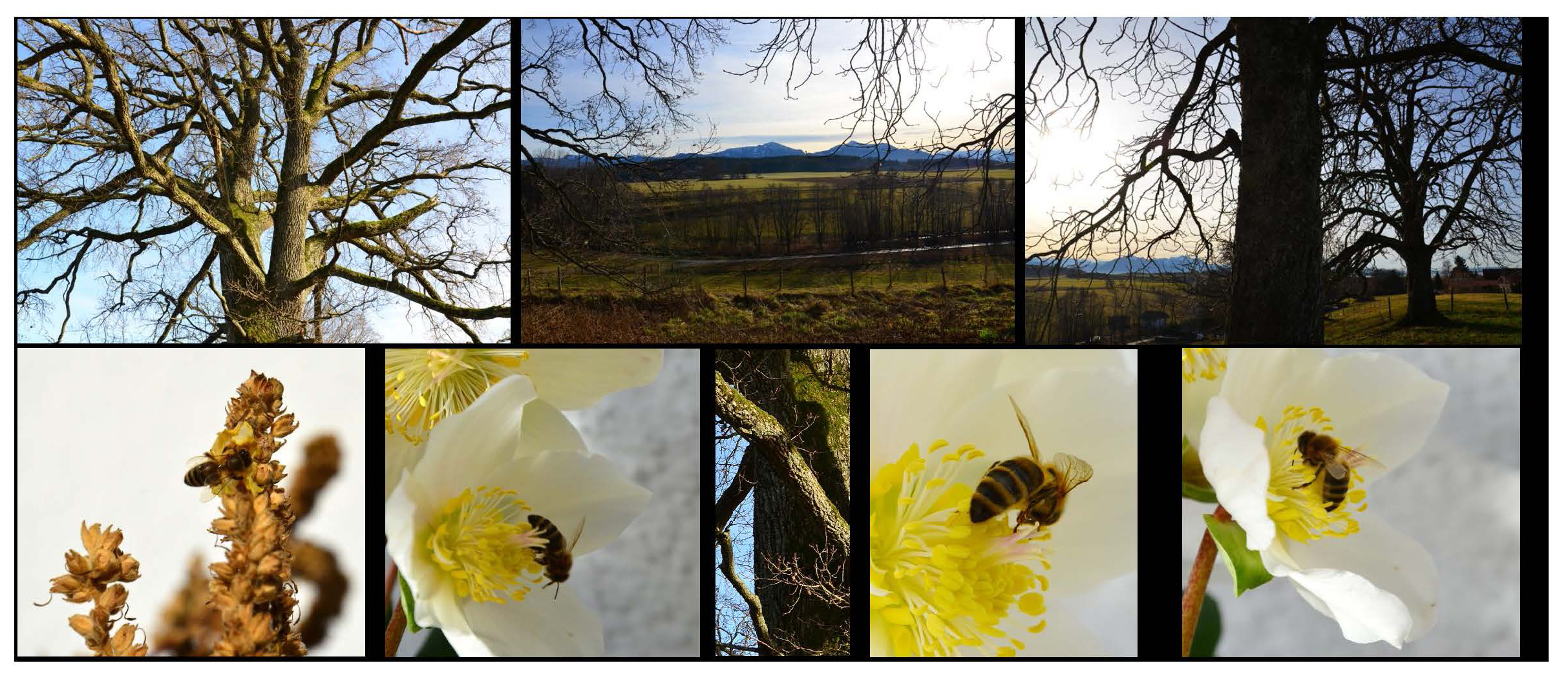 „Gib acht“, sagte „Peri“, die Vegetationsgöttin zu mir heute in der Mittagssonne. Klar, was sollte sie mir auch anderes ins Ohr flüstern am 8. Januar ?! Sie ist schon lange wach und aktiv bei diesem Frühlingswetter, hat die Bienen schon vor Wochen aufgeweckt. Damit sie nicht weiter in den vertrockneten Königskerzen vergeblich nach Pollen suchen, gibts erblühte Schneerosen extra für sie.  Die Bienen haben ihre wahre Freude dran! Dann weiter mit den Hunden, raus und der Sonne entgegen. An einem meiner Lieblingsplätze, zwischen den Eichen und Kastanien, da blinzelte Peri mir dann sogar zu. Wer sich jetzt denkt ich spinne wohl, hab Visionen am hellichten Tag, liegt gar nicht so daneben. Denn ohne Visionen gehts nicht weiter, gibt es keine Entwicklung, kommt alles zum Stillstand. Lieber Visionär als im Hirn und Herzen leer!